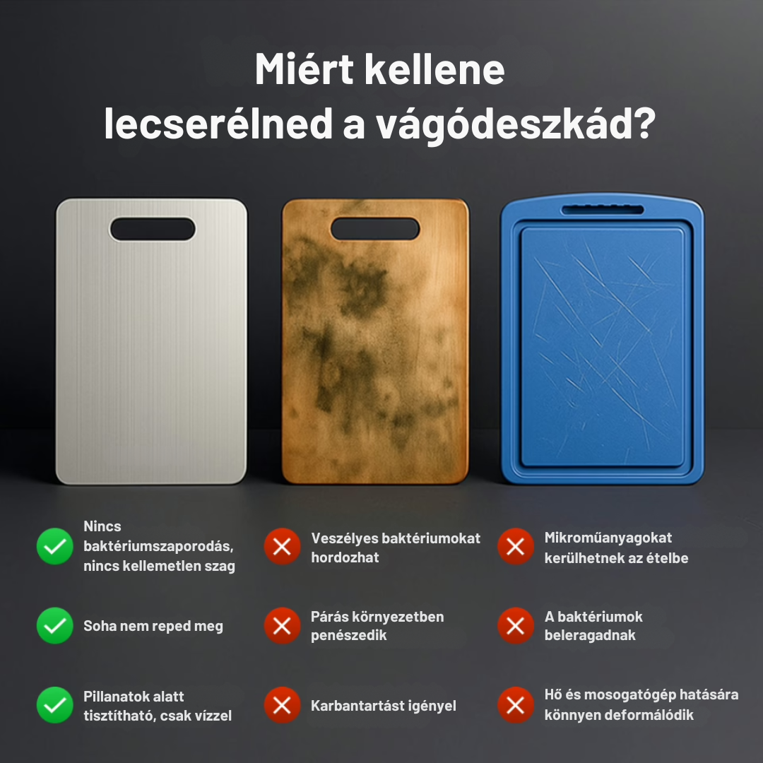 Több ezer elégedett vásárló esküszik a Titán Vágódeszka tartósságára és biztonságára. Felejtsd el a baktériumokra hajlamos vágódeszkákat és az állandó cserét. Ezzel a prémium minőségű titán vágódeszkával magabiztosan készítheted az ételeket, tudva, hogy egy tisztább, hosszabb élettartamú vágódeszkát használsz.